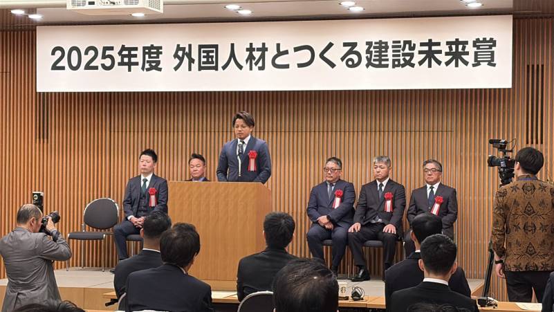 国土交通大臣表彰 外国人材とつくる建設未来賞受賞!2025年12月に国土交通大臣表彰「外国人材とつくる建設未来賞」において“外国人材育成賞”を受賞しました。滋賀県内の企業で初受賞となります!
